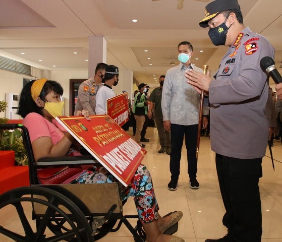 Stok vaksin yang dipersiapkan dalam kegiatan ini sebanyak 41.400 dosis jenis sinovac. Kemudian, paket bansos yang diserahkan sebanyak 27.000 paket sembako, bantuan 1.000 porsi dapur umum dan 2.200 voucher isi ulang oksigen (PT. Samator) yang akan diberikan kepada masyarakat. (rilis)