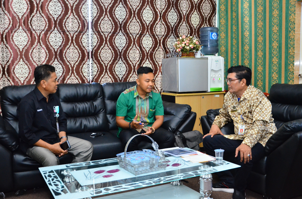 | Kepala Dispersip Bengkalis, H. Suwarto saat audiensi dengan Ketua Pelaksana Festival Sungai Bukit Batu, Juwandi |