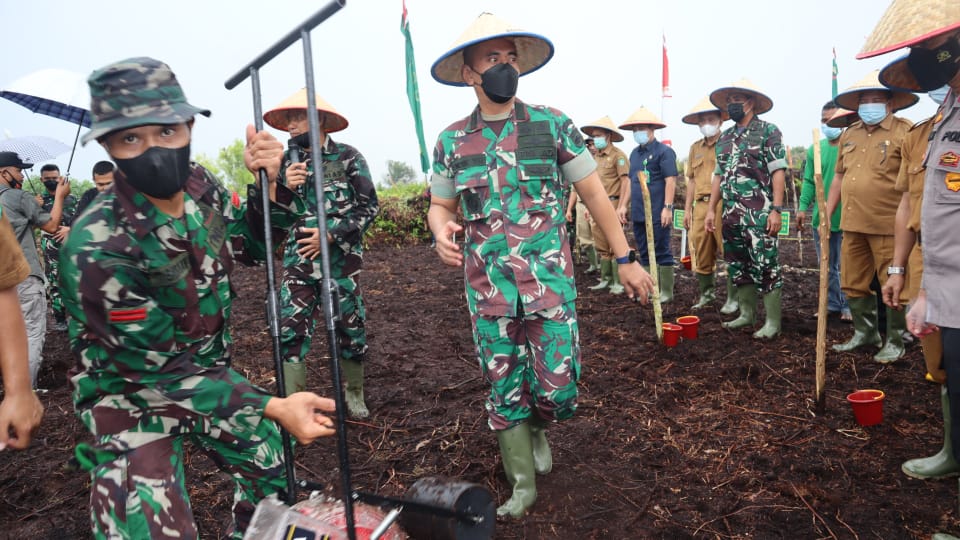 Dibawah rintik-rintik hujan tak menurunkan semangat Dandim 0303/Bengkalis beserta Forkompinda Bengkalis bercocok tanam, dimana launching Program ketahanan pangan ini dilakukan serentak di jajaran Korem 031/WB se-Riau.