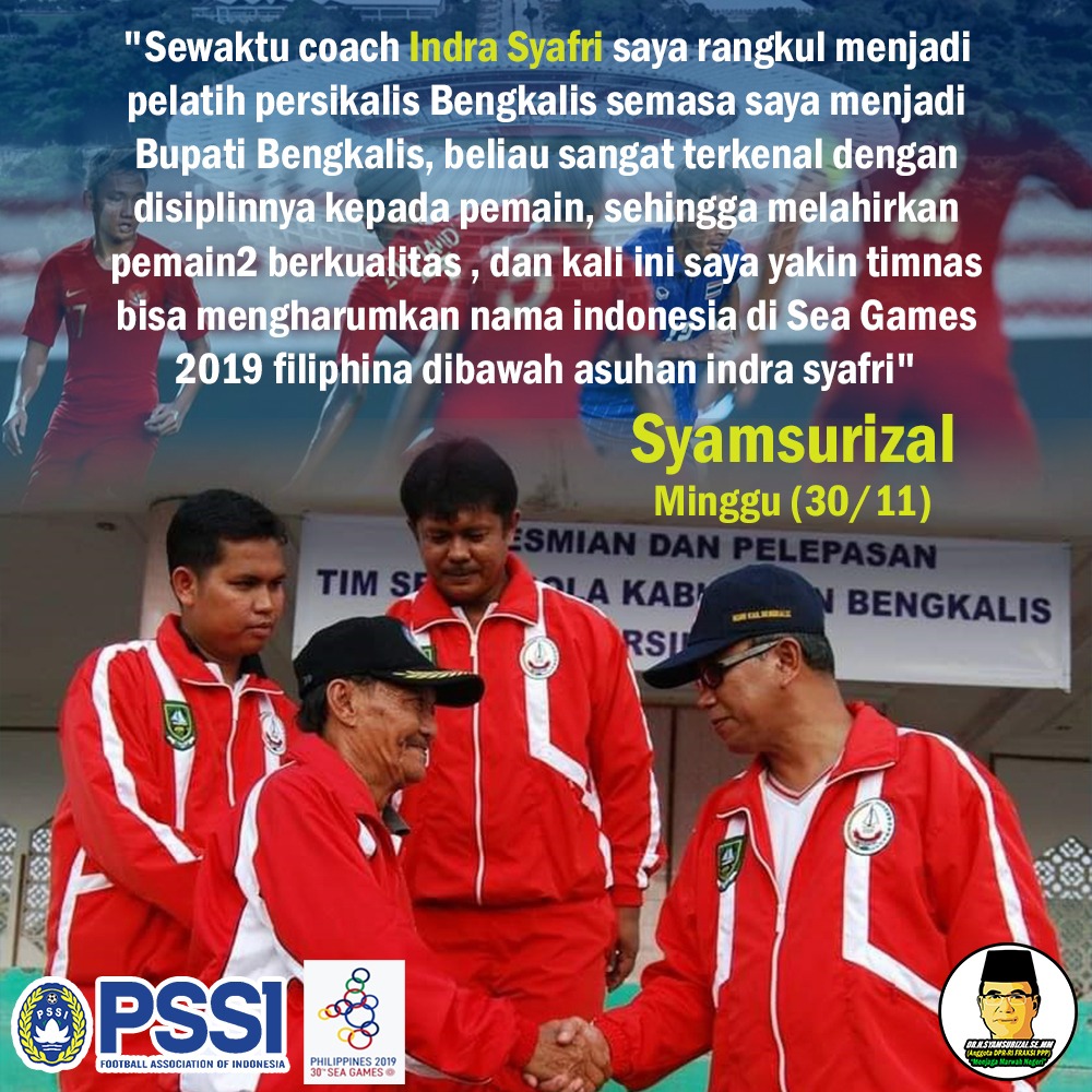 “sampai hari ini saya bangga coach indra syafri telah mengharumkan nama indonesia dikancah international dibidang sepakbola , saya yakin kedepan timnas indonesia akan lebih cemerlang gemilang dan terbilang,†Kata Putra Asli Riau itu.