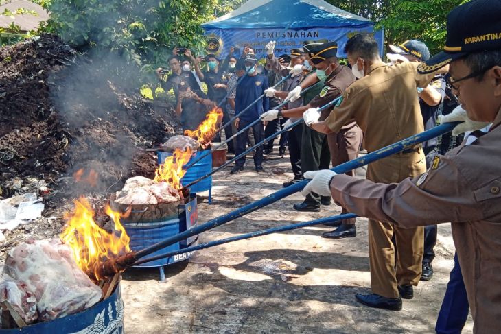 | Sebanyak 41,2 ton daging ilegal asal India dimusnahkan oleh Kantor