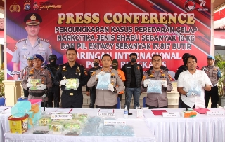 "Pengungkapan ini berhasil berkat kolaborasi dan sinergitas dengan Bea Cukai dan berhasil mengamankan satu pelaku bersama barang bukti 10 kg narkoba jenis sabu dan 17.817 butir pil ekstasi pada Minggu (18/6), " ujar Kapolres Bengkalis AKBP Setyo Bimo Anggoro saat melakukan konferensi pers, Senin (26/6/2023).