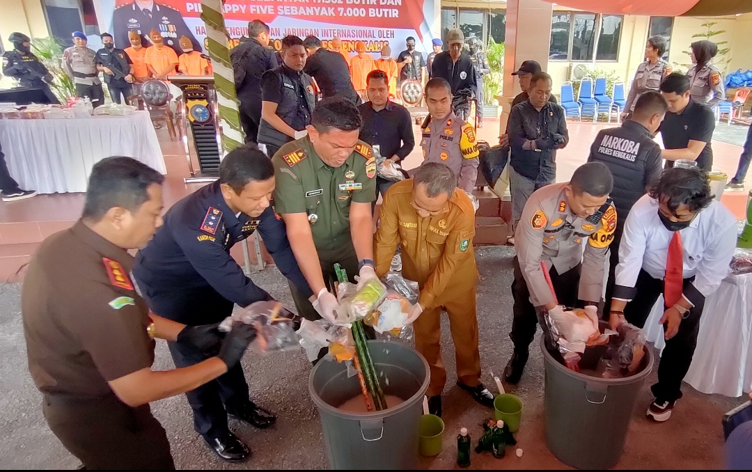 Barang haram yang dimusnahkan ini merupakan pengungkapan pada 7 Juli 2023 disita sabu-sabu berat 9 Kg lebih dan 1.575 butir pil ekstasi, kemudian 26 Juli 2023 amankan berat sabu 4 Kg lebih.