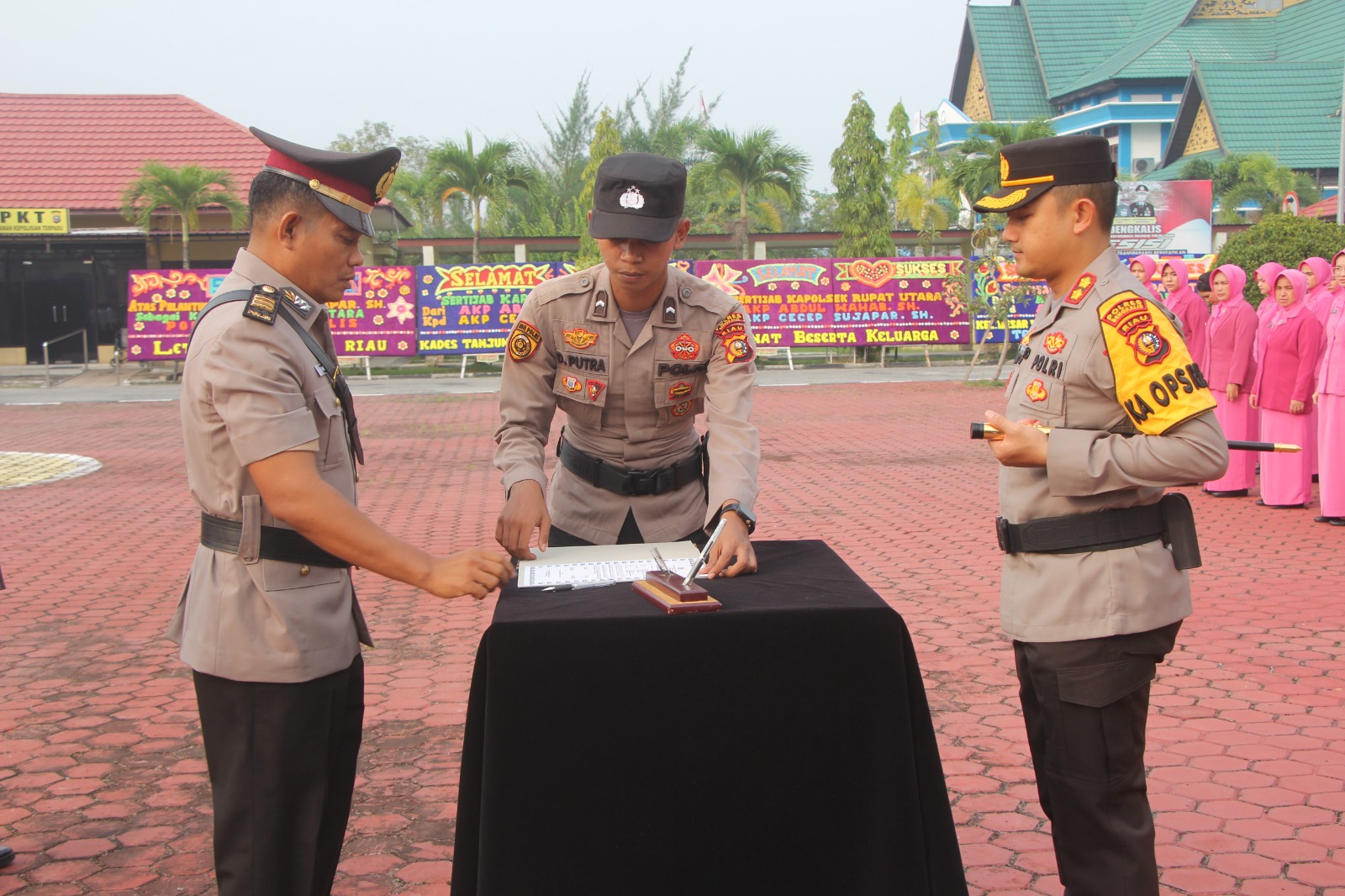 Kapolres Bengkalis AKBP Setyo Bimo Anggoroemimoin serah terima jabatan Kapolsek Bengkalis dan Kapolsek Rupat.
