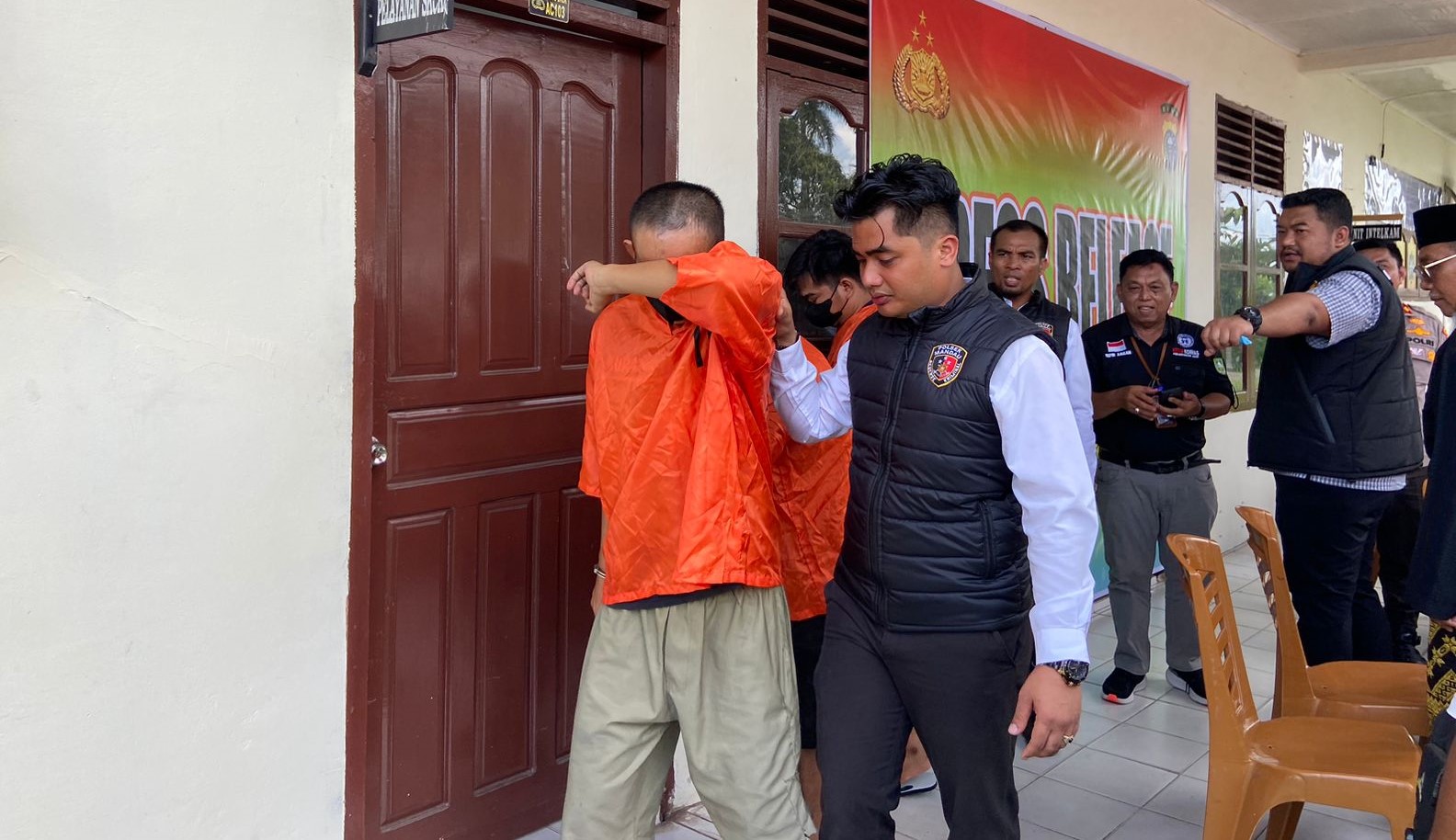 Tersangka pencabulan A saat digelandang ke sel tahanan Mapolsek Mandau