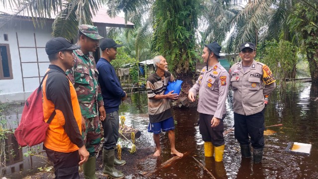 Kapolsek Salurkan Bantuan, Dua Desa di Kecamatan Siak Kecil Terendam Banjir