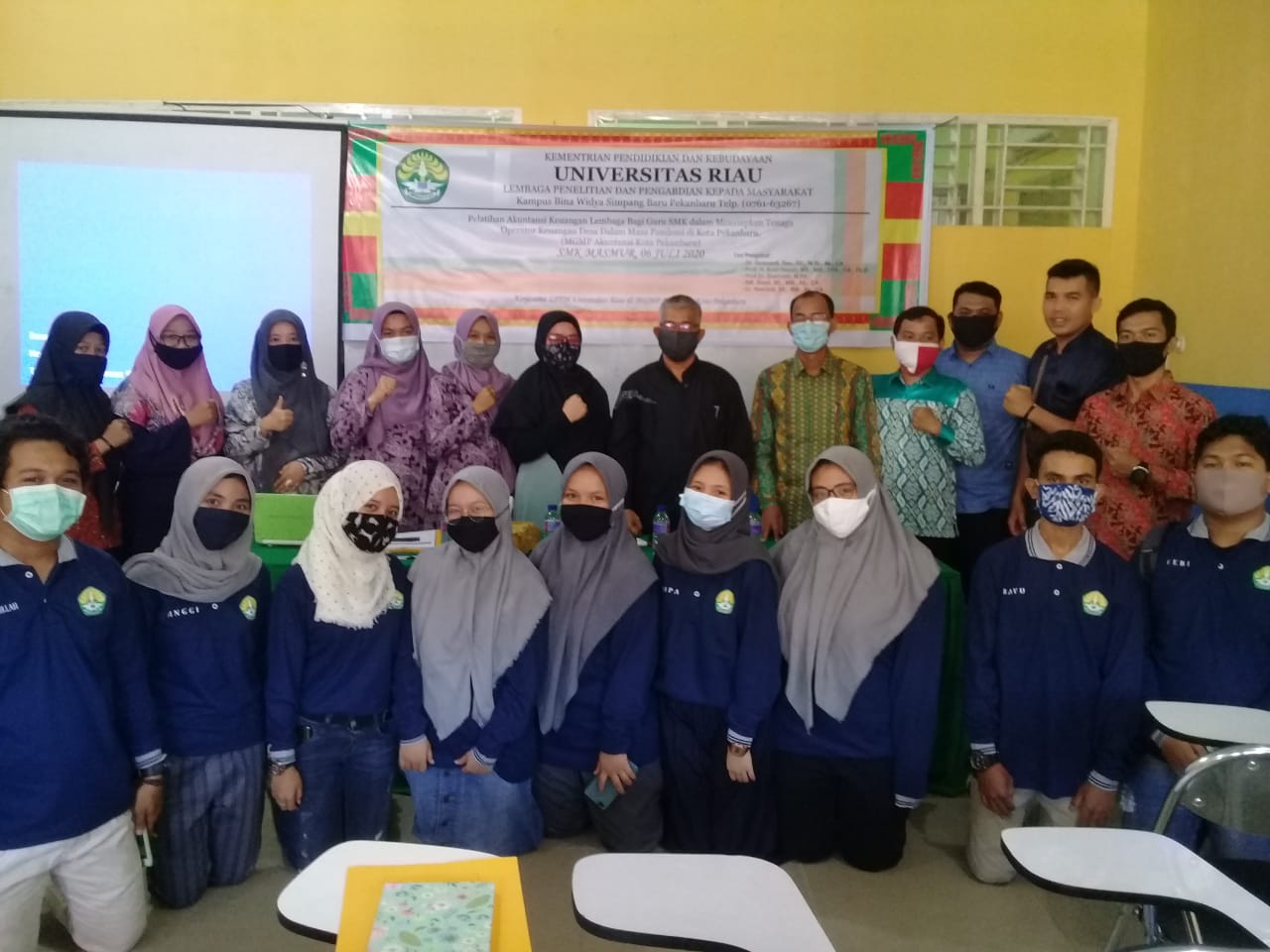 Pekanbaru, RiauTempo.com - Lembaga Peneliti dan Pengabdian Kepada Masyarakat Universitas Riau (LPPKM Unri) menggelar Pelatihan Akuntansi Keuangan bagi para guru akuntansi dan juga mahasiswa kuliah kerja nyata (kukerta) terintegrasi Unri di Sekolah Menengah Kejuruan (SMK) Masmur di Pekanbaru, Senin (6/7/2020).