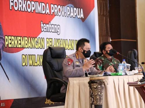 Rabu, 29-09-2021 - 14:55:27 WIB JAKARTA - Panglima TNI Marsekal Hadi Tjahjanto dan Kapolri Jenderal Listyo Sigit Prabowo memimpin rapat koordinasi (rakor) kesiapan pengamanan Pekan Olahraga Nasional (PON) ke-XX Papua, Rabu (29/09).Dalam pengarahannya, Sigit menekankan kepada seluruh personel TNI-Polri untuk melakukan upaya antisipasi terjadinya gangguan keamanan dan ketertiban...(read more)